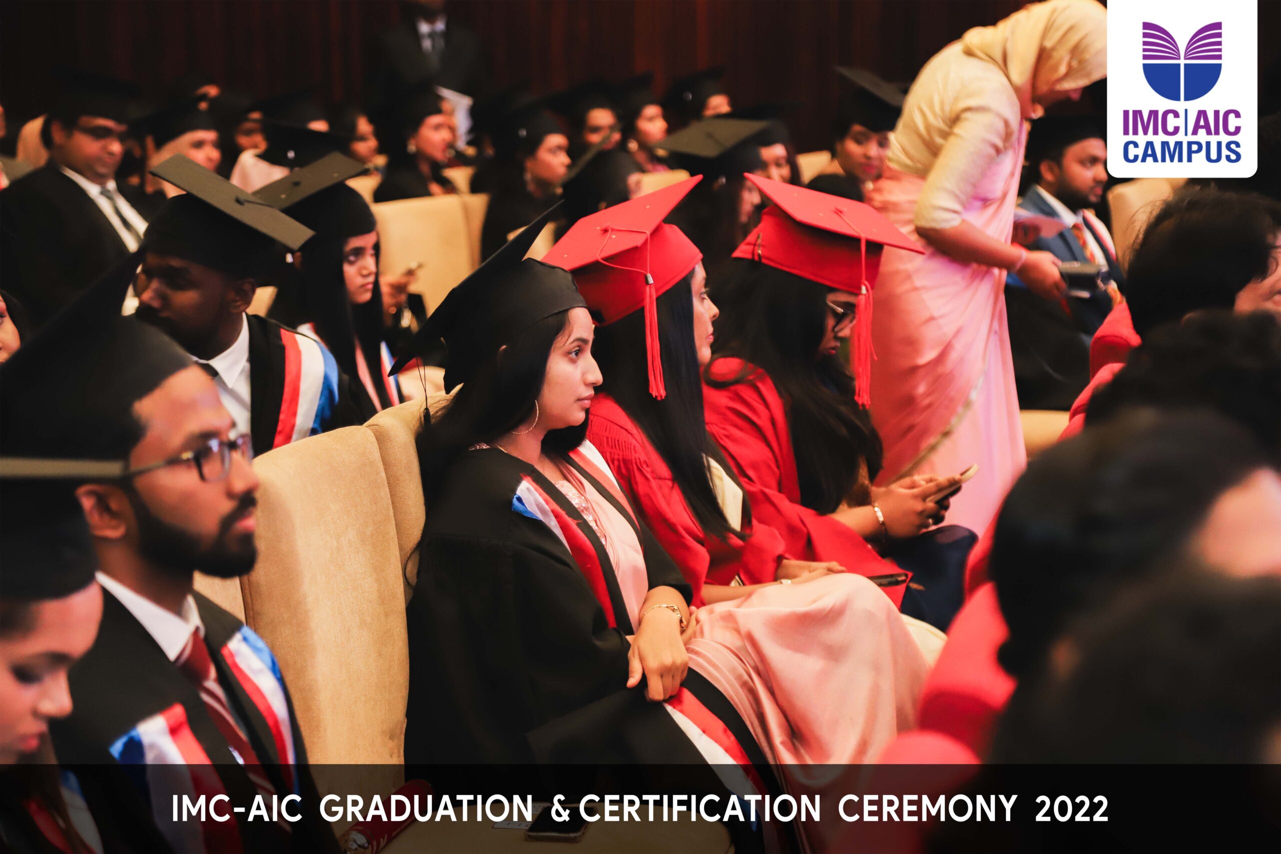 The 6th Annual Graduation and Certification Ceremony of IMC AIC Campus was held onthe 5th of January 2022 at BMICH. The chief guest of the event was Mr. Fouzul Hameed -Managing Director of Envoy London and Hameedia Group.The guest of honors included Dr. Kanishka de Silva – Consultant Oncological Surgeonand Chairman of the Onco-surgery Board (PIM), Dr. Roshan De Lima – Country DirectorLincoln University Malaysia, Ms. Premila Paulraj – Director, Employability andQualifications – Pearson South Asia, Mr. Suriya Bibile – Deputy General Manager Sales –Pearson and Ms. Olivia Bellemere – Cultural Counsellor Embassy of France. We would like to congratulate all the graduates and wish them for all of their future studiesand endeavors!